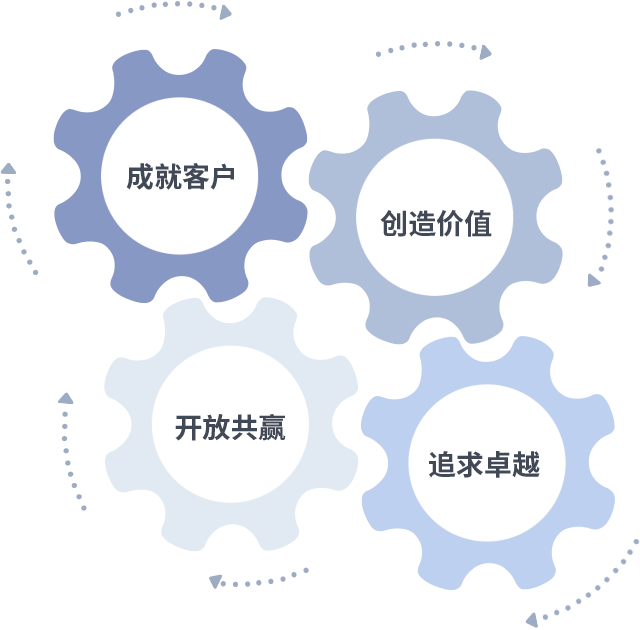 成就客户是一切决策的出发点,创造价值是衡量所有工作的标准,追求卓越是宝运莱做事做人的态度,开放共赢是宝运莱的格局也是最终的结果。价值观的齿轮环环相扣,推动着组织里的每个人不断向前。